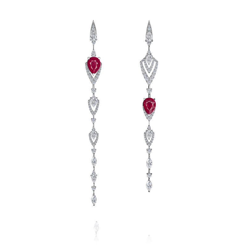 Pear-cut rubies. Pear-cut, marquise and round-cut diamonds.